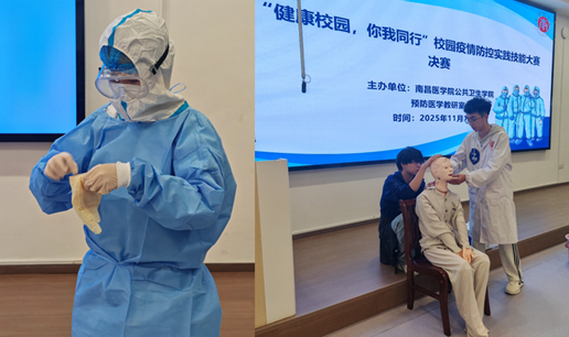 南昌医学院公共卫生学院于2025年11月16 日成功举办“健康校园,你我同行”校园疫情防控实践技能大赛决赛。本次大赛旨在通过实践竞技,全面提升学生的疫情防控意识和应急处置能力,筑牢校园健康安全防线。经过前期激烈的预赛选拔,五支精英队伍脱颖而出,会师决赛舞台,展开了一场知识与技能、速度与精准的巅峰对决。